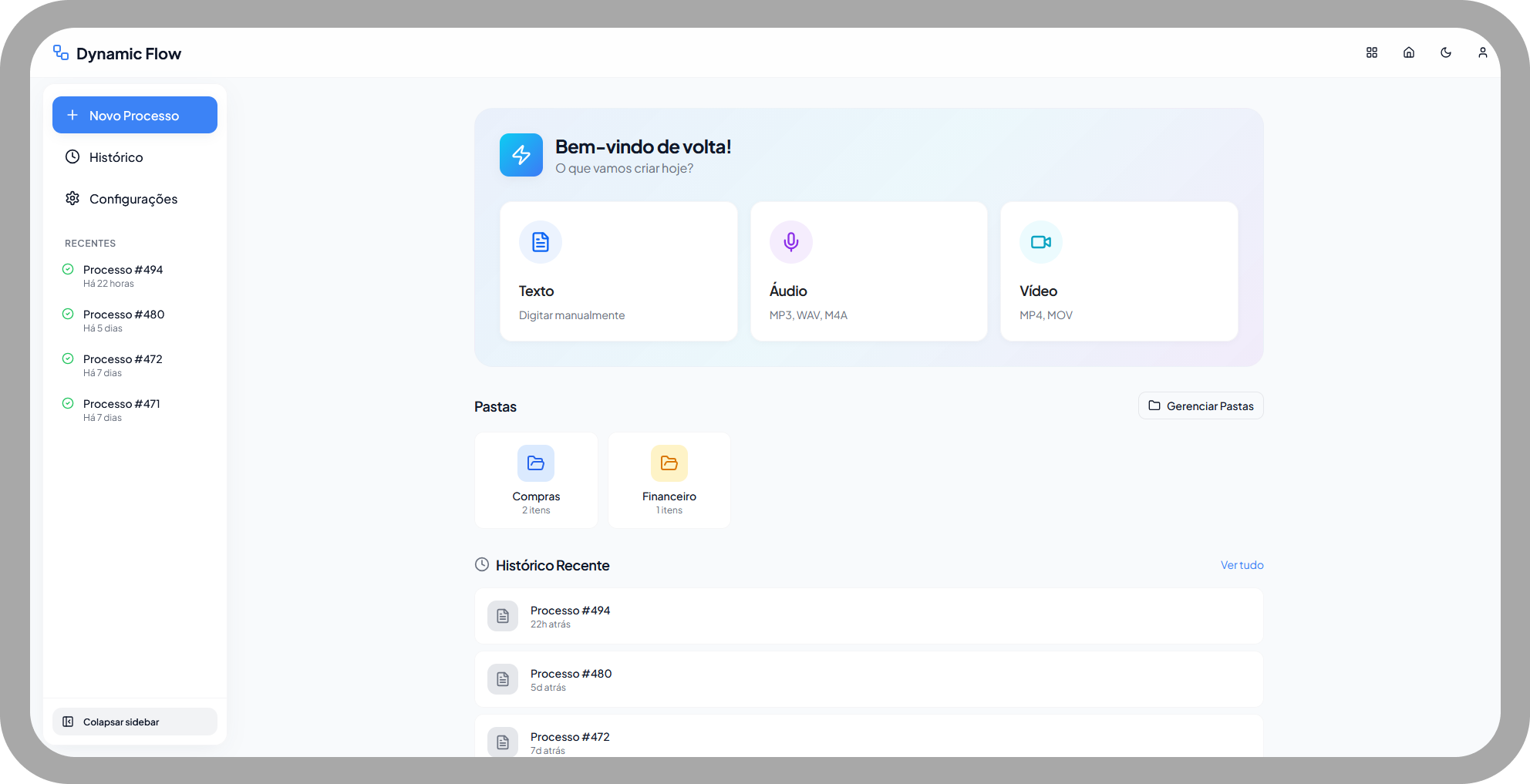 Em minutos, você carrega os arquivos e o Dynamic Flow entrega a estrutura do processo com documentação padronizada. reduzindo a dependência de anotações manuais e eliminando falhas de interpretação.